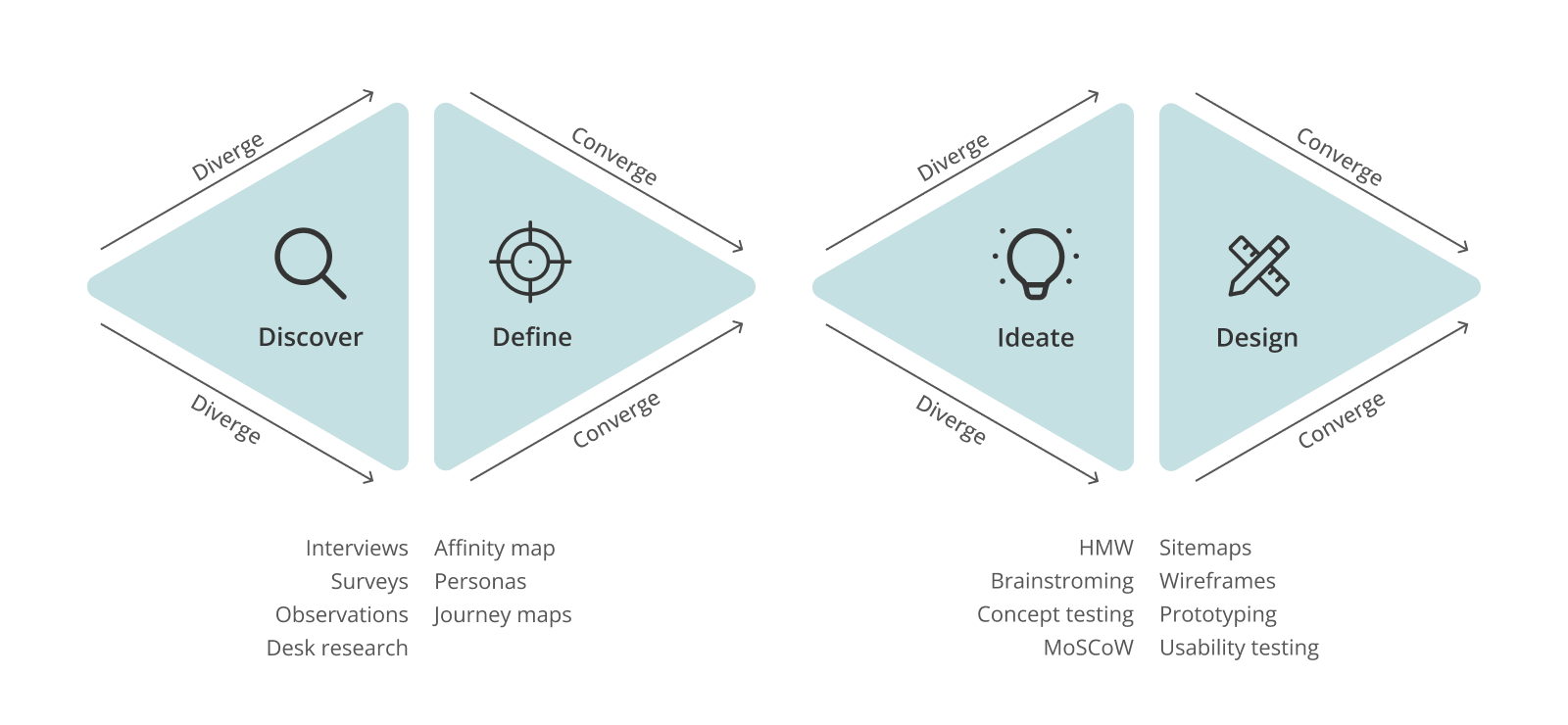 • Ideate: HMW-statements, brainstorming, concept testing, MoSCoW