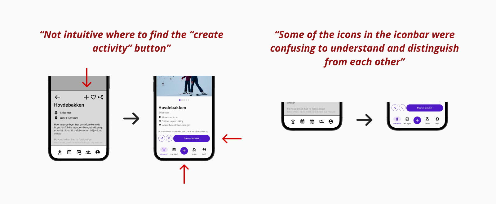 The test participants highlighted confusion around navigation when performing various tasks. For example, it was suggested making key actions like "create activity" more clear and intuitive to find.