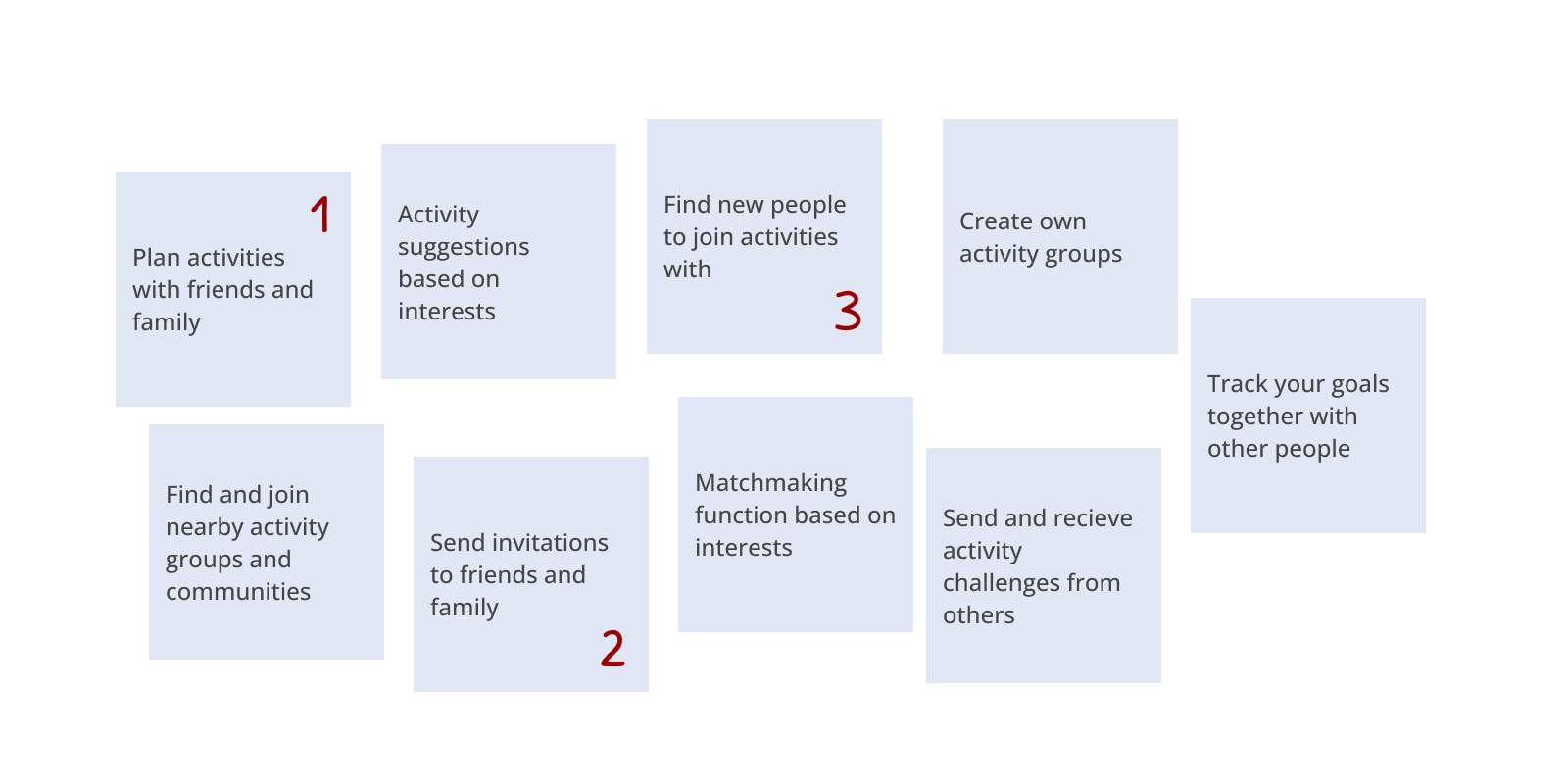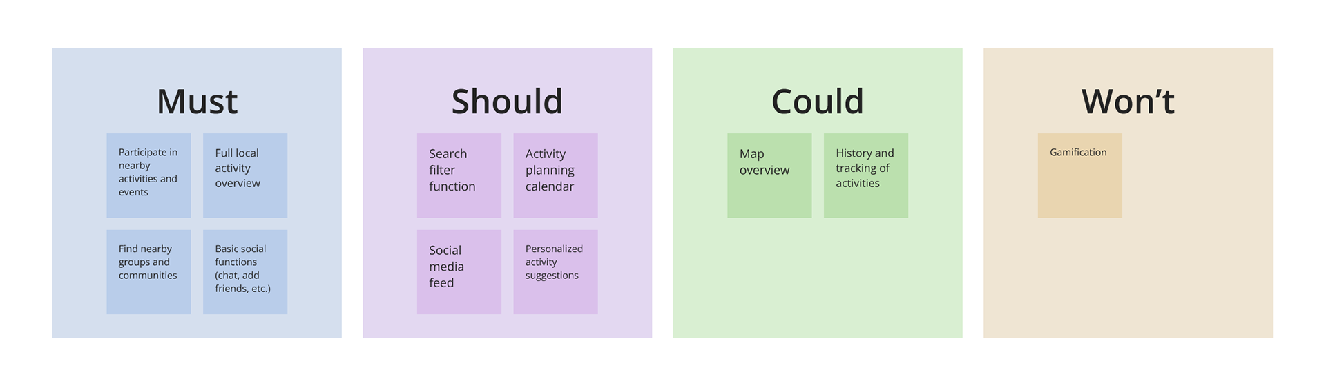 To prioritize the features and decide which concepts to take forward into prototyping, I applied the MoSCoW-method (must, should, could & won't have)